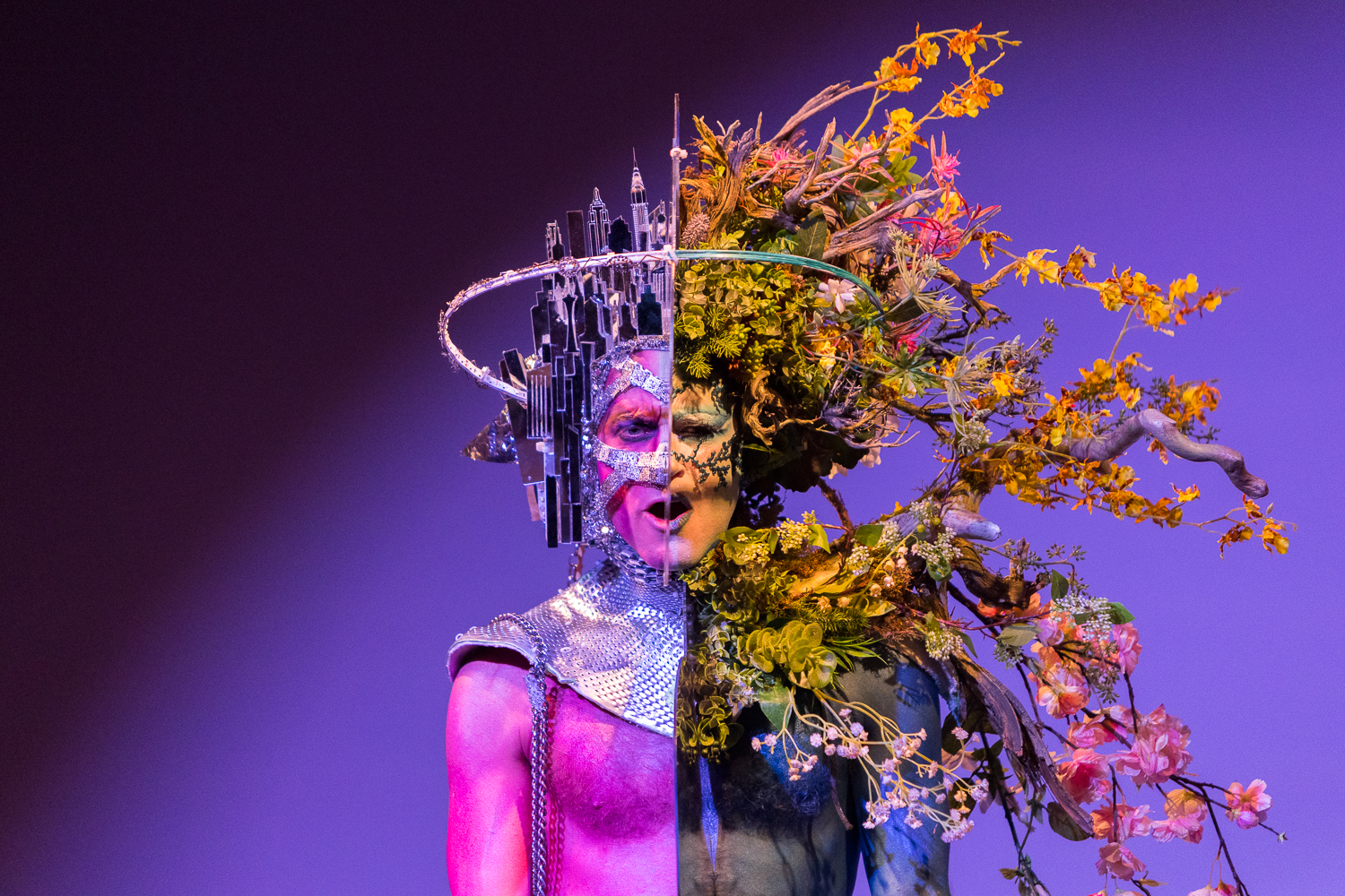 Darrell Thorne (b. 1976, Branson, Missouri) lives and works in Brooklyn, New York. He enjoys exploring the many dualities and contradictions that exist in all facets of society, utilizing fantasy, camp, and beauty (and plenty of mirrors) to reflect on what unites and divides us. Through song, spoken word, movement, and dance, coupled with highly detailed costume and makeup, Darrell invites viewers to be transported and elevated without sacrificing entertainment. A lover of ritual, iconography, fantasy, and storytelling, Darrell attempts to channel all these elements through costuming and paint on his body, coupled with live performance. He has exhibited and performed at the Park Avenue Armory, SFMOMA, Lincoln Center, Brooklyn Academy of Music, Chashama, New York Academy of Art, Helsinki Night of Arts, The Smithsonian, Rubulad, The Mexico City Cabaret Festival, and received an NEA grant for his six week performative installation Under Glass and In Color.