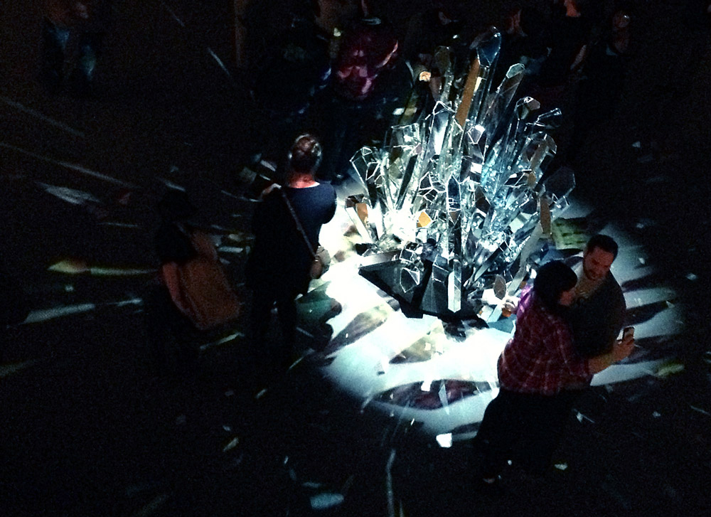 The crystal reflects video as well as the image of the participants, creating a new environment where both the viewer and video become equal contributors to the artwork. Viewers are hypnotically drawn to the crystal, as if approaching a campfire, and tend to congregate around the object, constantly looking inward. However, there is a threshold, a point in which the viewer's body is compelled to retract, as if the object's element of danger is repelling them backward. Also linked to this work is a sense of loneliness that conjures a distant memory of being alone on the dancefloor in the awkward time frame when the music and lights are pounding but no one has yet arrived to the club.