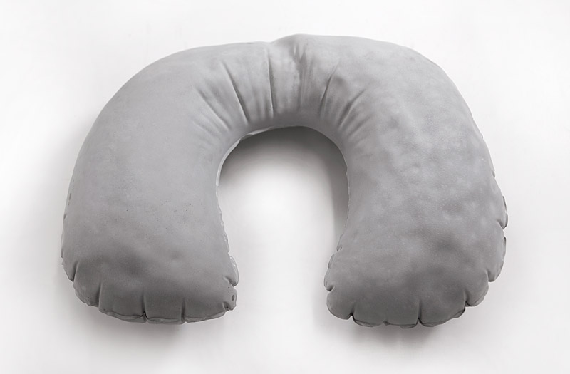 Pillow is a product by the Institute for New Feeling, an artist collective including Scott Andrew, Nina Sarnelle, and Agnes Bolt. It is a weighted cement neck pillow to be used in-flight or at home.