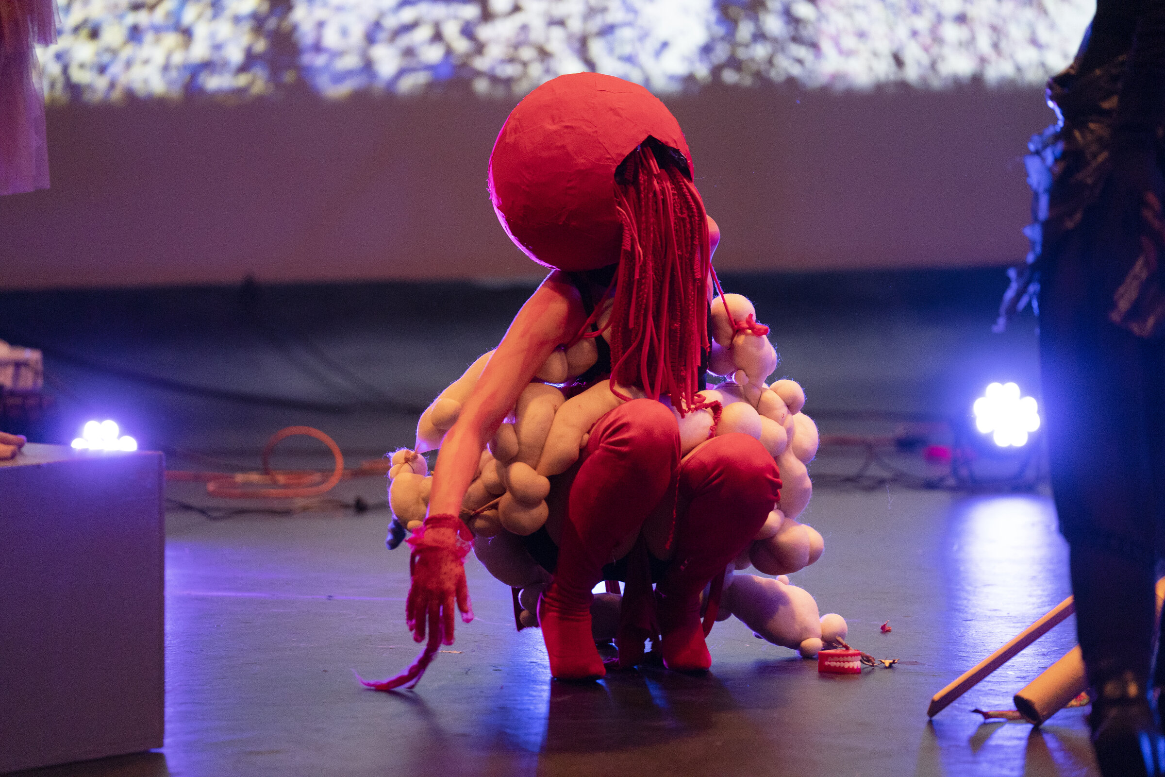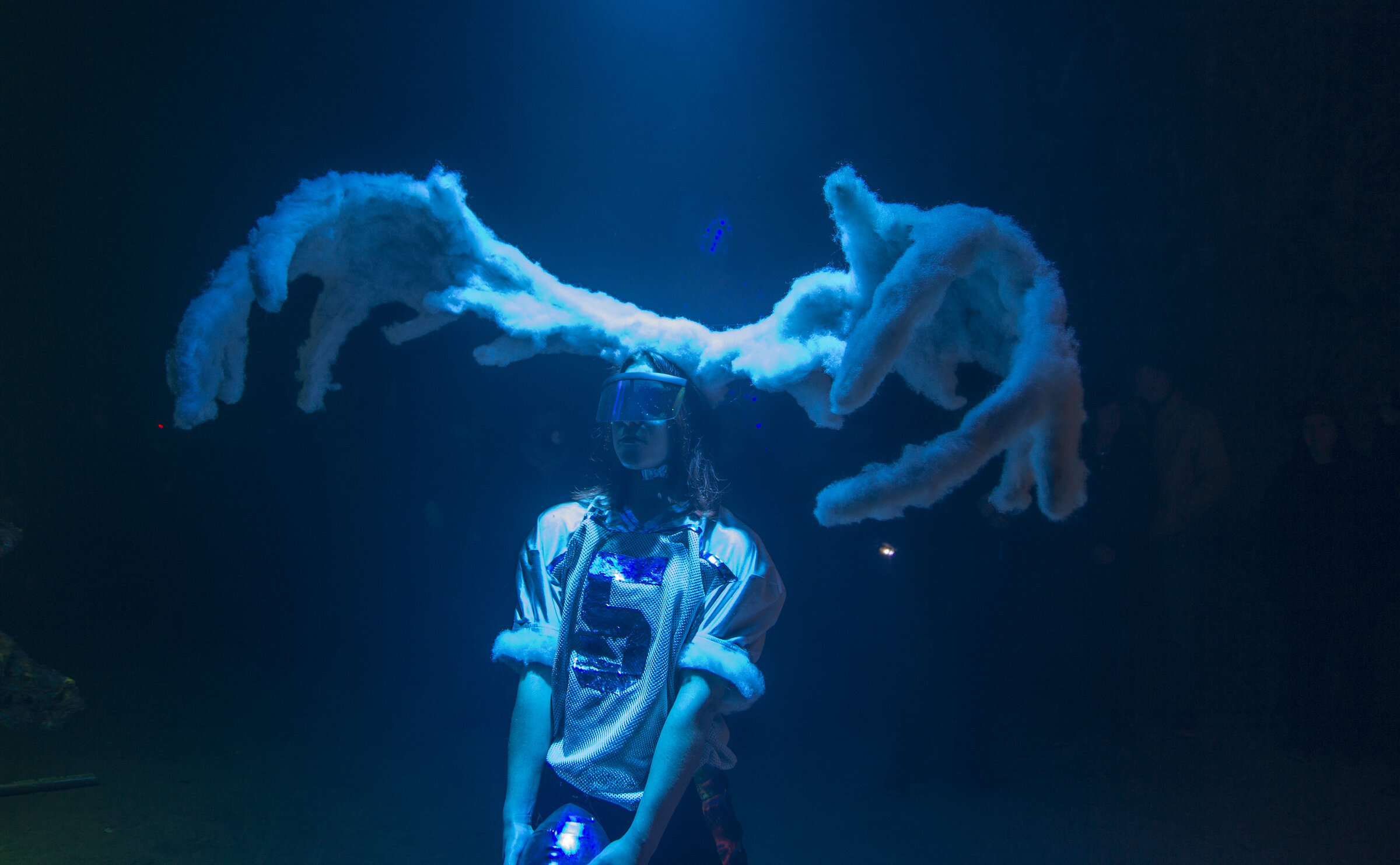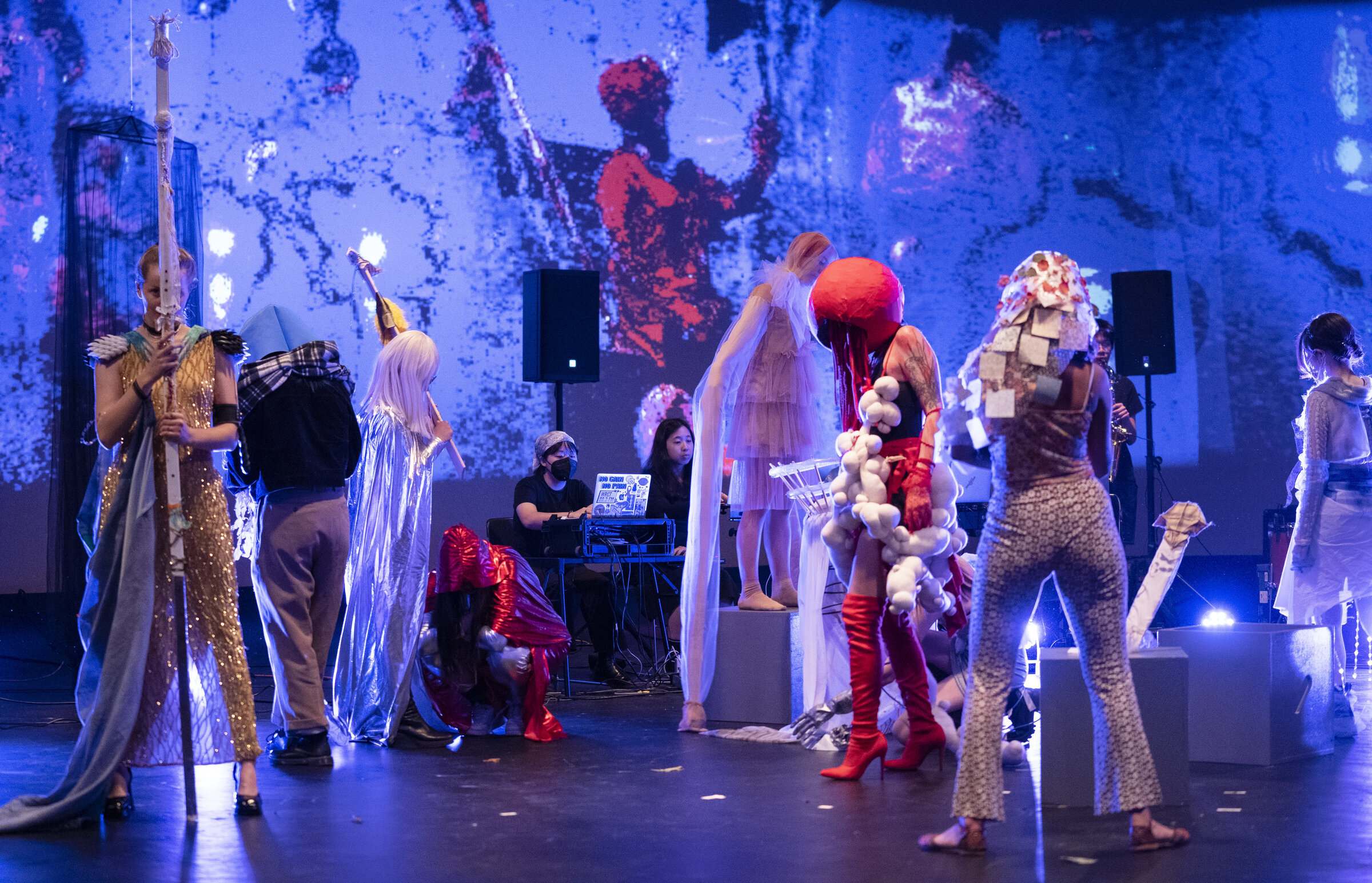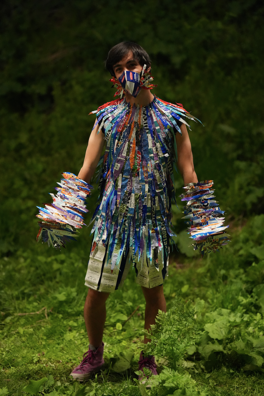 Students worked in a variety of media, including sculptural approaches with fabric, papier-mâché, ready-made and recycled materials that investigated new ways to interacting with physical environments through exploration in the adaptation, translation, enhancement, exaggeration, modification, and mutation of the human body. These constructions were then activated through performance gestures for photo, live and prerecorded video, social media platforms, and live and interactive events.