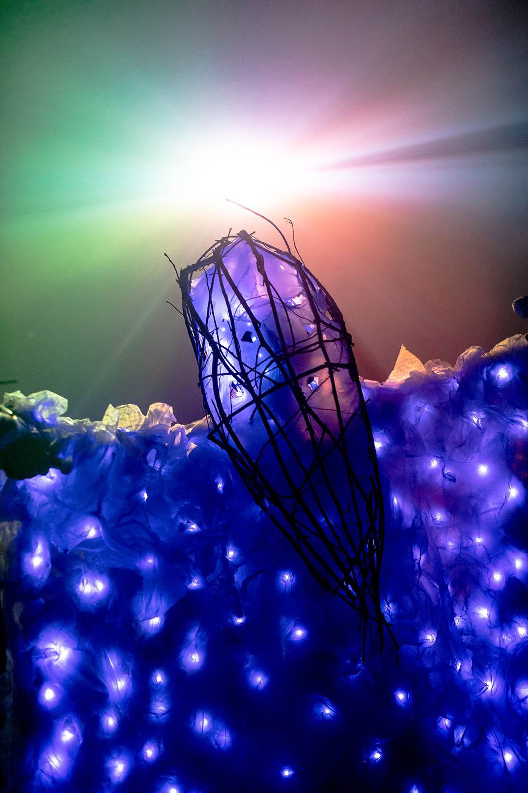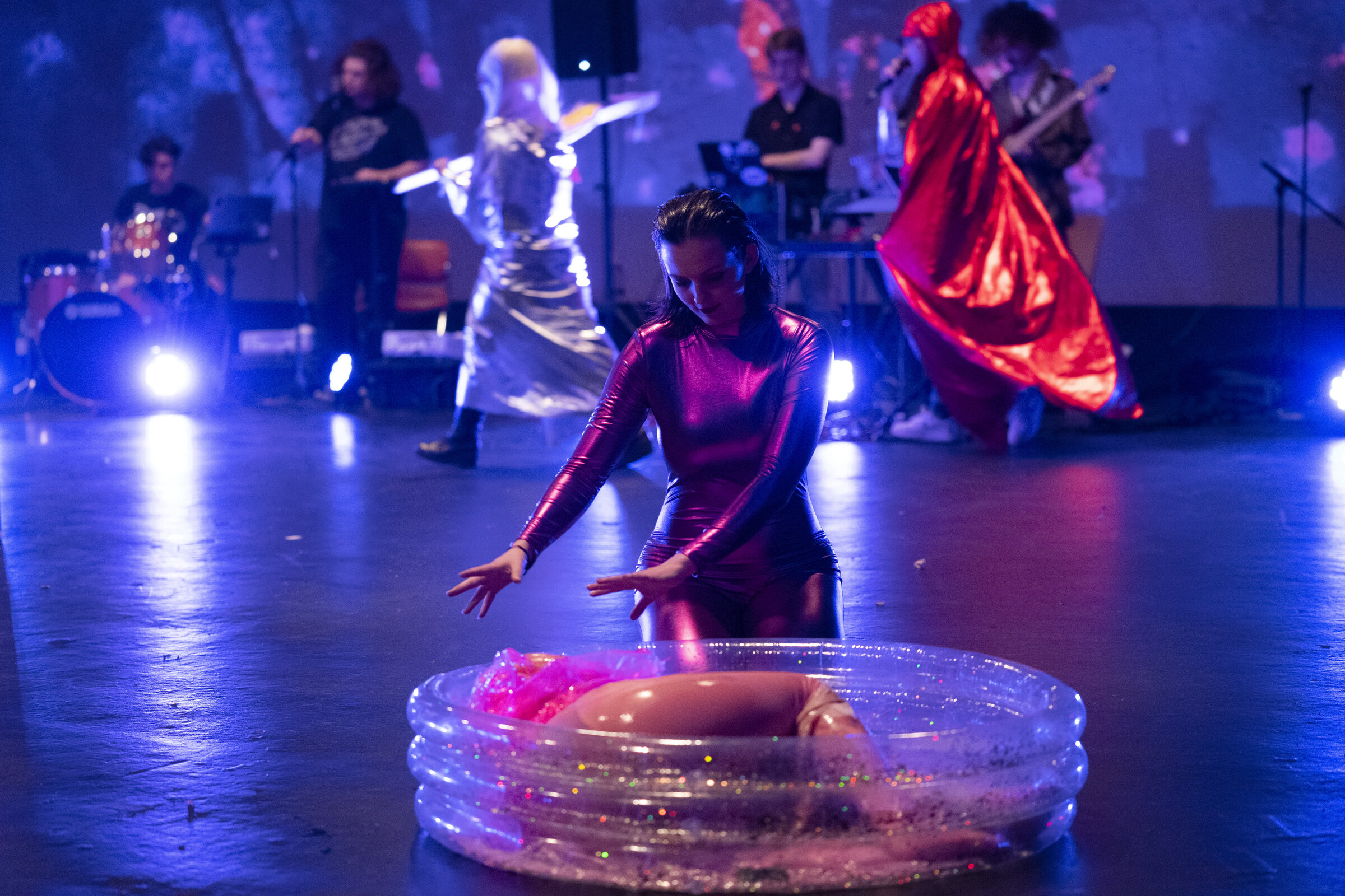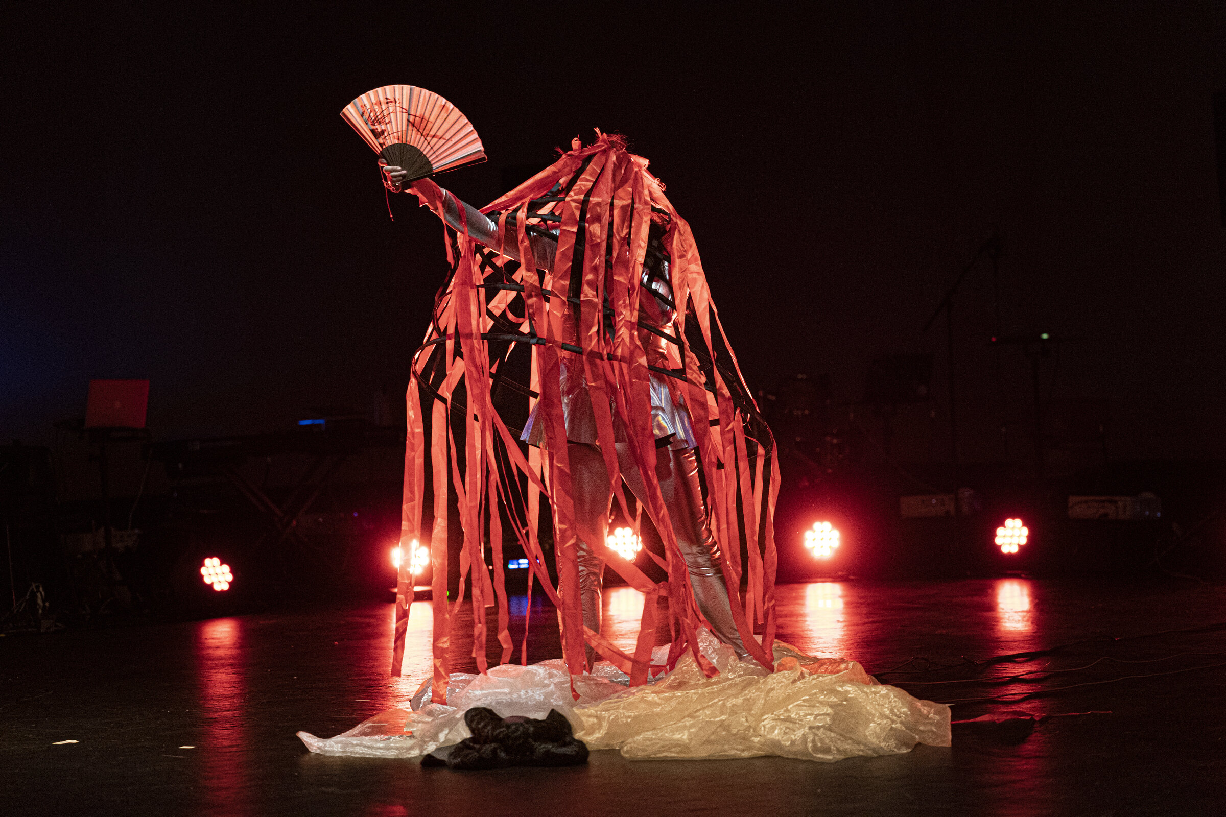 Students worked in a variety of media, including sculptural approaches with fabric, papier-mâché, ready-made and recycled materials that investigated new ways to interacting with physical environments through exploration in the adaptation, translation, enhancement, exaggeration, modification, and mutation of the human body. These constructions were then activated through performance gestures for photo, live and prerecorded video, social media platforms, and live and interactive events.