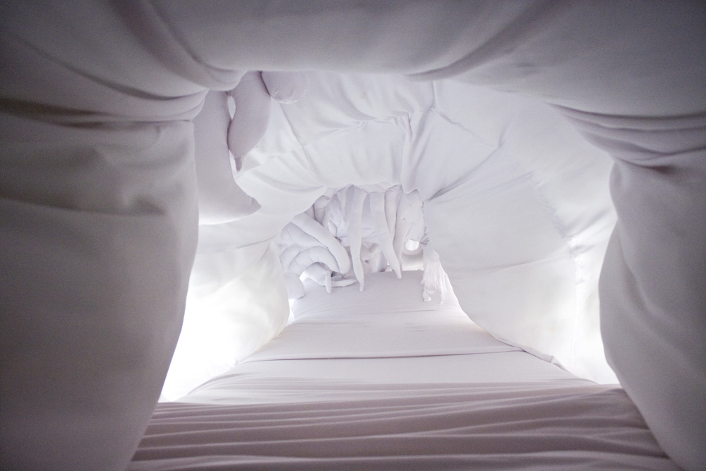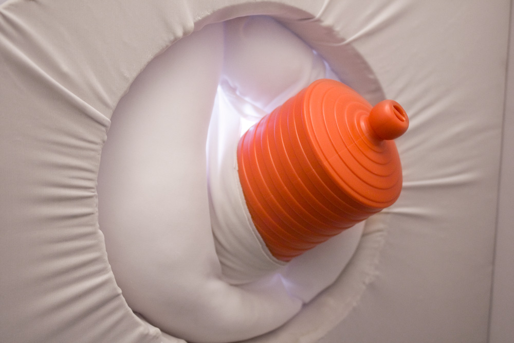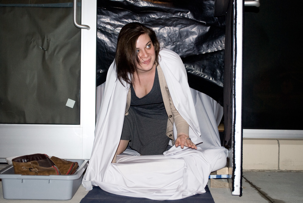Through the windows of the storefront a small waiting room is visible, where participants wait for their name to be called. One person at a time enters the performance space, which is an enormous area beyond the waiting room façade. The subsequent experience is structured somewhat like an amusement park ride, providing a full sensory experience that is confrontational, visceral, and absurd. Each personal performance lasts 10-15 mins, depositing the participant out a back exit on Bakery Square Boulevard.